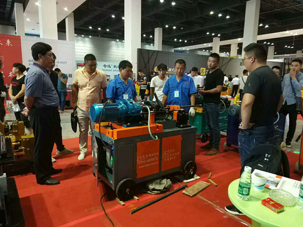 在交易會上,我公司推出了2018年研發的最新產品JBG-40型全自動滾絲機,該機型采用PLC可編程控制,可實現鋼筋的自動夾緊及機床的自動進給,鋼筋的夾緊、定位及螺紋加工可實現一鍵操作,操作簡便,運行穩定,加工效率高。在現場分多次為數百位參會經銷商進行了操作演示,效果良好,得到了廣大經銷商的一致好評,會上簽訂了意向訂單十六個。