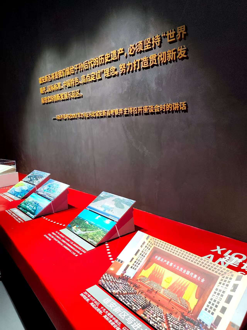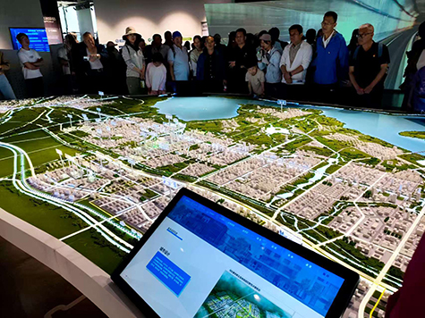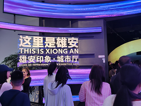 之后我們到達了雄安印象展館,展館中展示著雄安新區的規劃設想,穿越“時光隧道”,沉浸式影像讓大家身臨其境,感受到了新區從無到有的變化。
